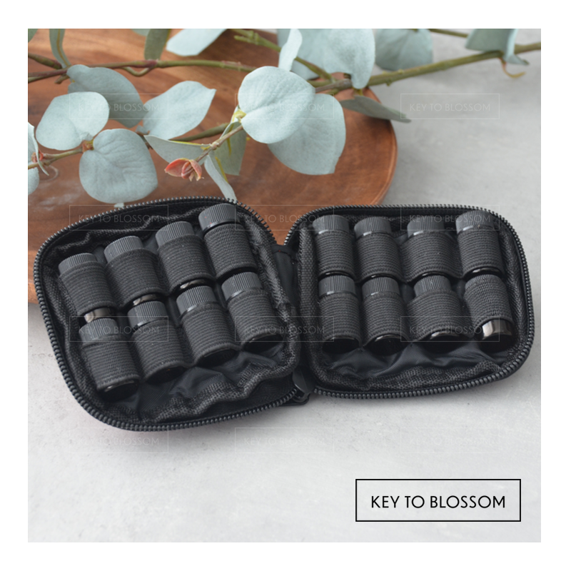 - Dieser Koffer kann separat bestellt oder mit 2 Sprühflaschen, 3 Rollerflaschen, 9 Probenflaschen, Broschüre und Kappenaufklebern gefüllt werden.