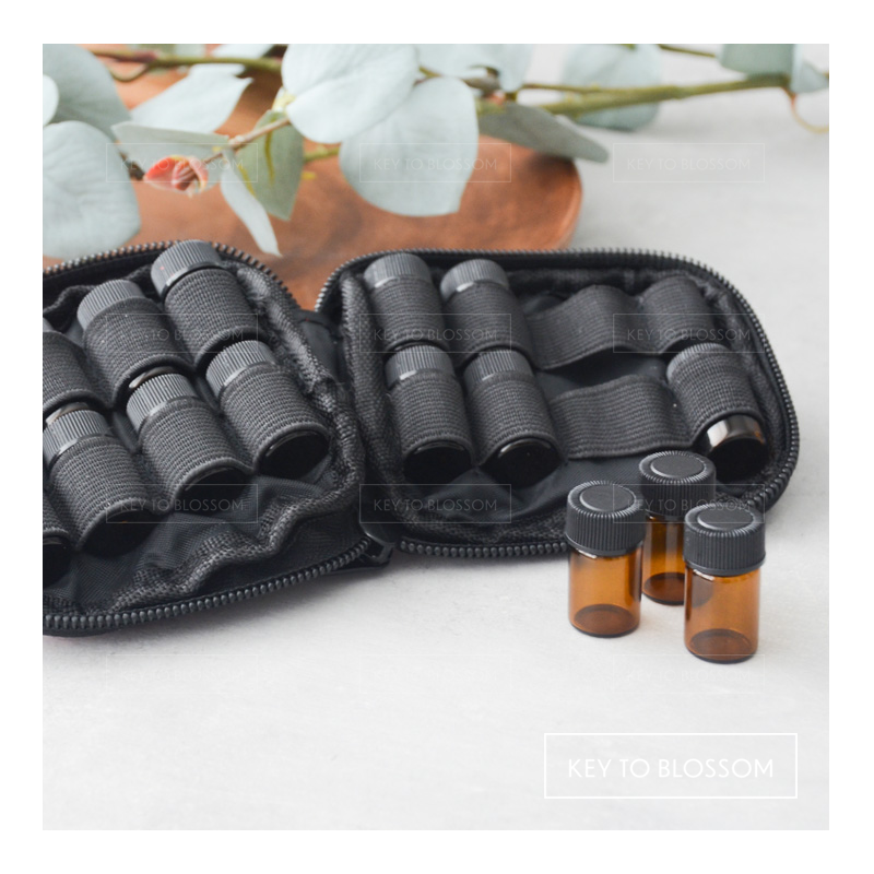 Im Inneren befinden sich Gummibänder für insgesamt 16 Plätze/Fächer für Ihre Proben. Es passen Proben von 1 ml und 2 ml. Sie können sich für die Standardproben entscheiden, aber auch die 2-ml-Rollerflaschen sind super praktisch für unterwegs.