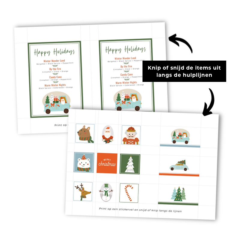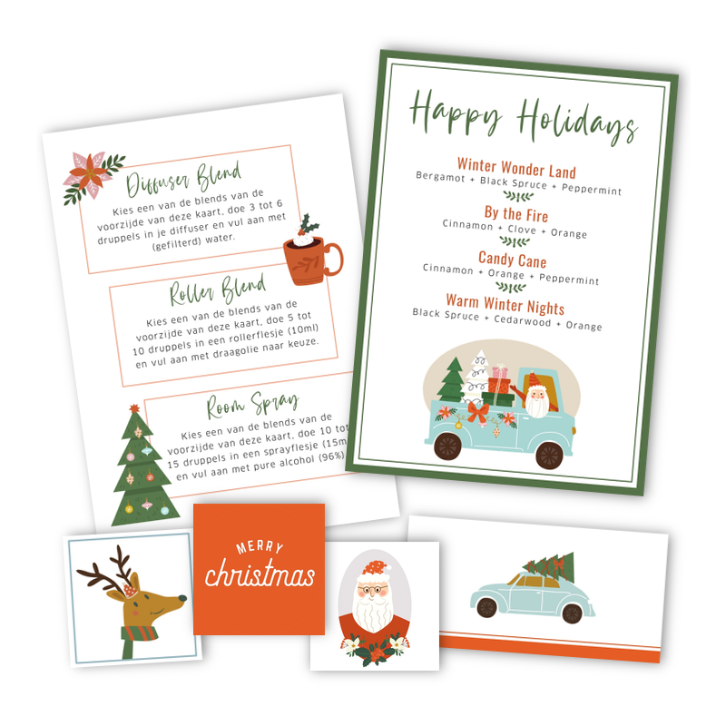 Auf der Rezeptkarte finden Sie vier verschiedene Rezepte und eine Beschreibung, wie Sie sie als Diffusormischung, Roll-On Mischung und/oder Room Spray verwenden können. Vervollständigen Sie Ihre Flasche mit den passenden Aufklebern.