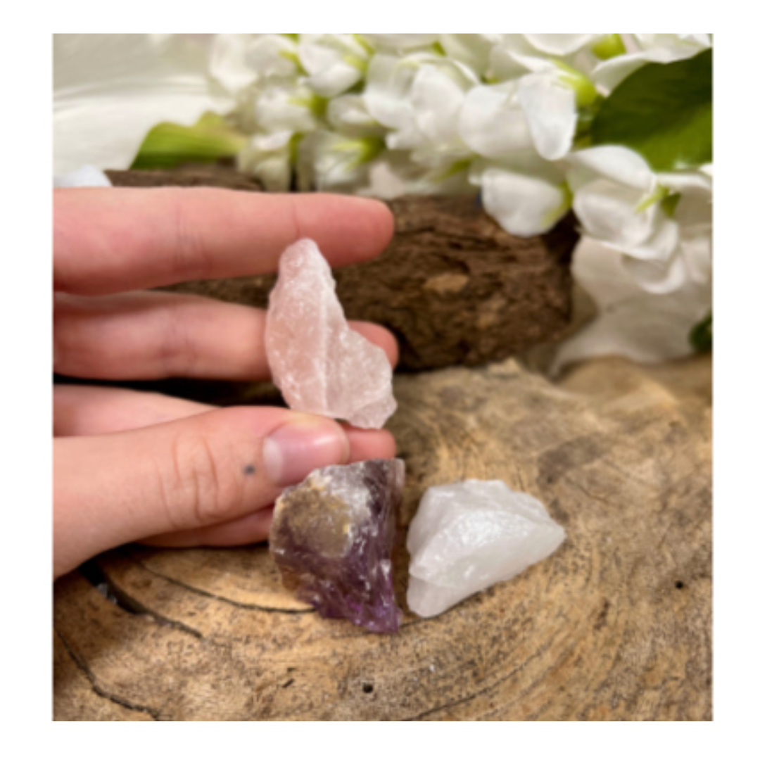 • Sie erhalten ein Set aus drei Edelsteinen inklusive einer Begleitkarte mit einer kurzen Erklärung der verschiedenen Steine.