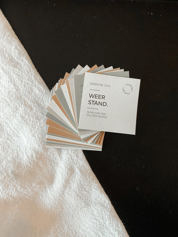 "Menschen fühlen sich von Natur aus von Ästhetik angezogen. Form, Farbe, Material und Zusammensetzung beeinflussen unsere Entscheidungen und Erfahrungen täglich. Diese Sammlung von Aufklebern hilft Benutzern ätherischer Öle, die Erfahrung und Wirkung von Ölen zu verarbeiten."