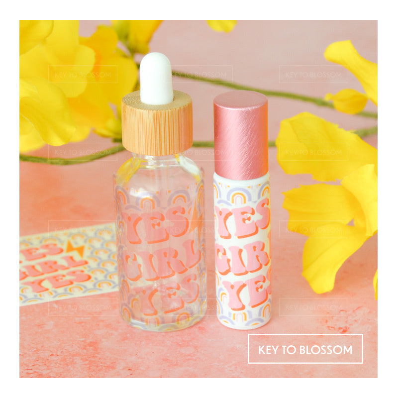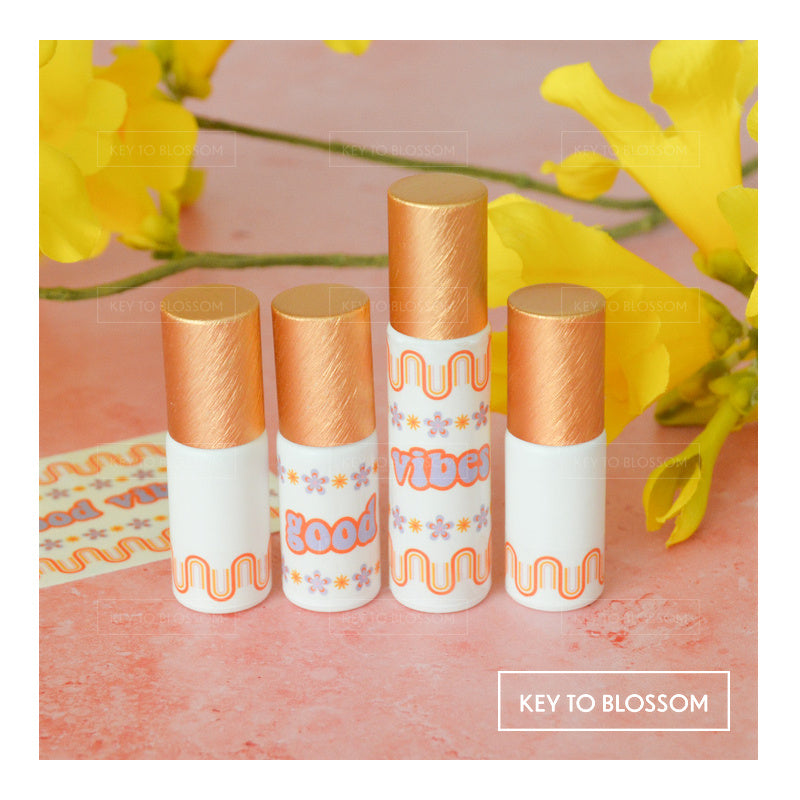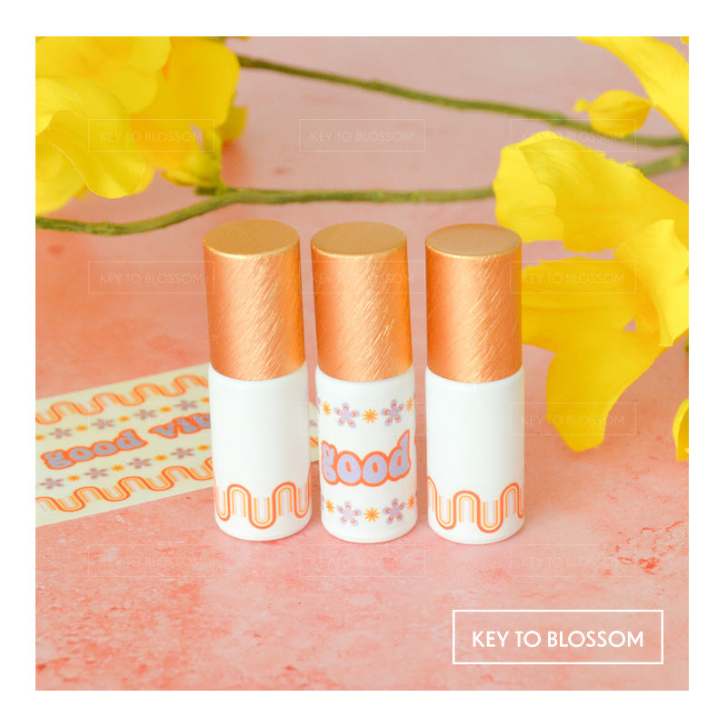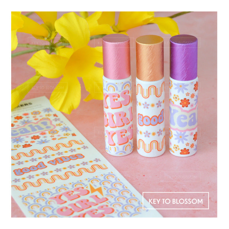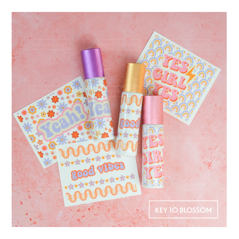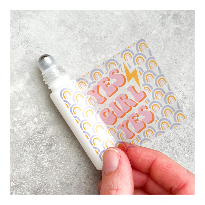 The stickers are printed on transparent vinyl and are therefore water resistant. Perfectly suitable for 10ml rollers. Also easily cut to size for other products.